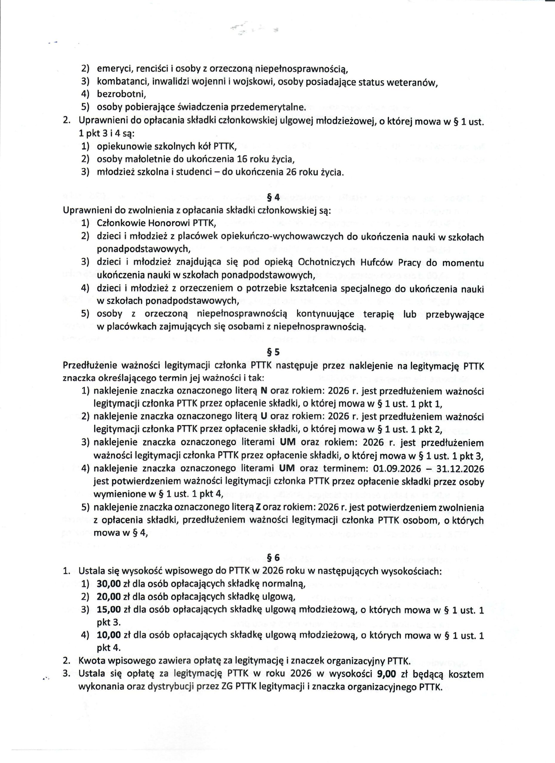 19 wrz Uchwała ZG PTTK dot.składek członkowskich na 2026 rok
